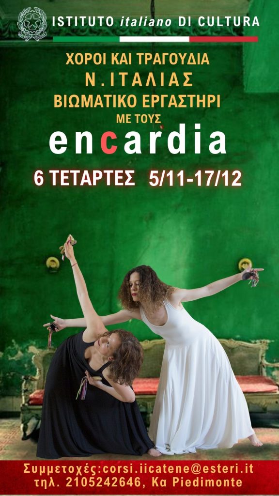 οι encardia μας προτείνουν μία απίστευτη διαδρομή στο χωροχρόνο μέσα από τα τραγούδια , της Ελληνικής και Ιταλικής αντίστασης και της λευτεριάς αλλά και ιδιαίτερες στιγμές του Μίκη Θεοδωράκη και του Μάνου Χατζιδάκι, που συναντιούνται μέσα από τις μελωδίες και τους Μεσογειακούς Ρυθμούς με τον Nino Rota και τις ταραντέλλες του μεσοπολέμου στον Ιταλικό Νότο…